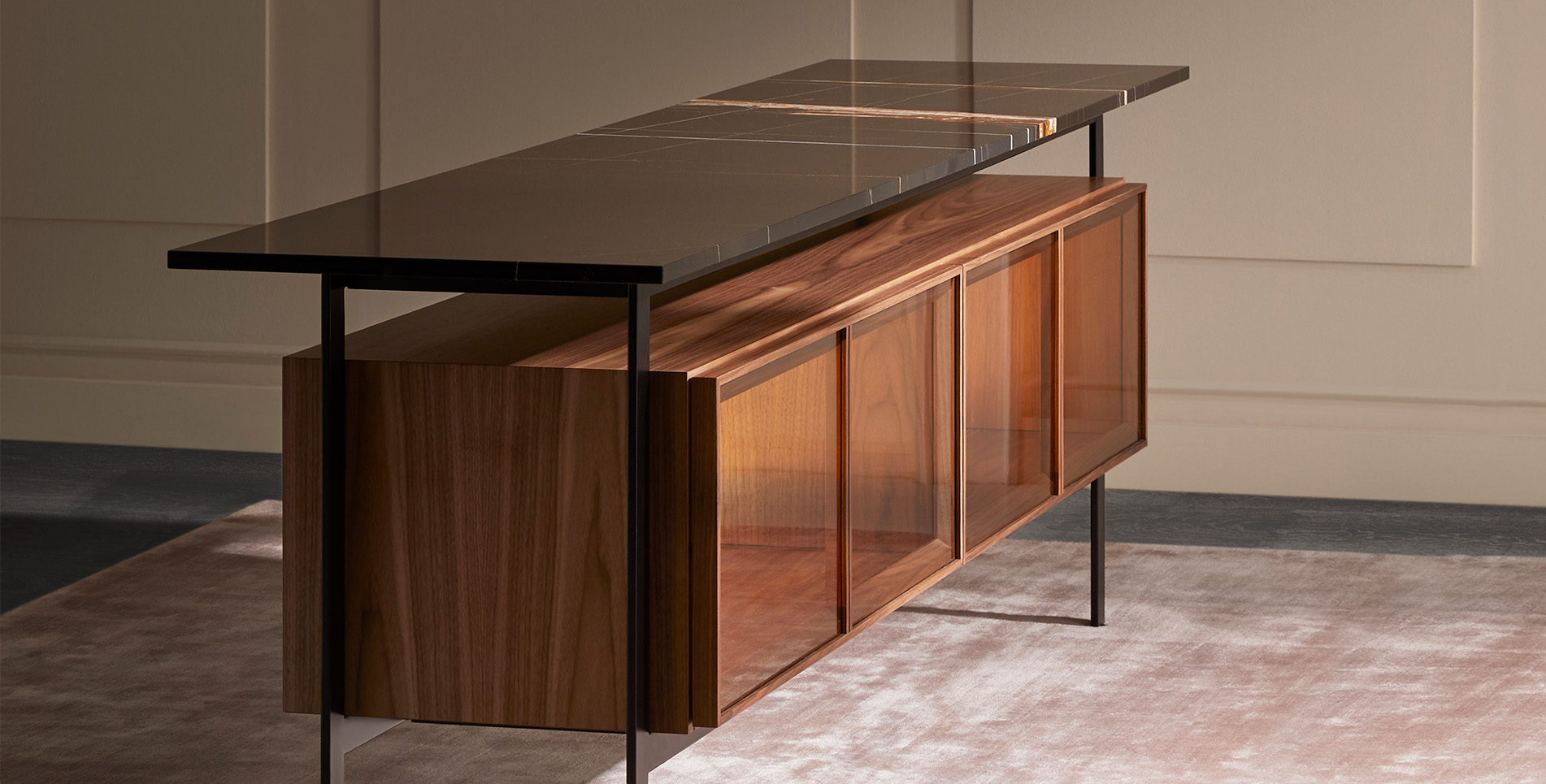 Aparador construido en acero madera y mármol en tapa con una elegancia suprema  , iluminación interior